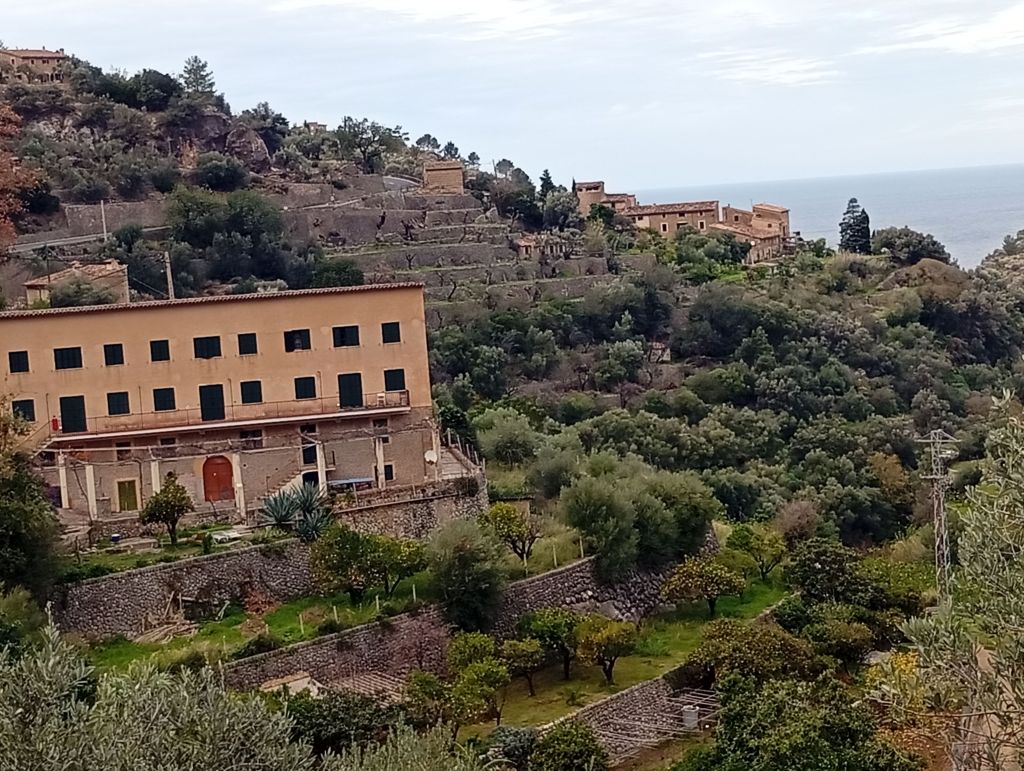 With selling tent near to the mountain and seaside.