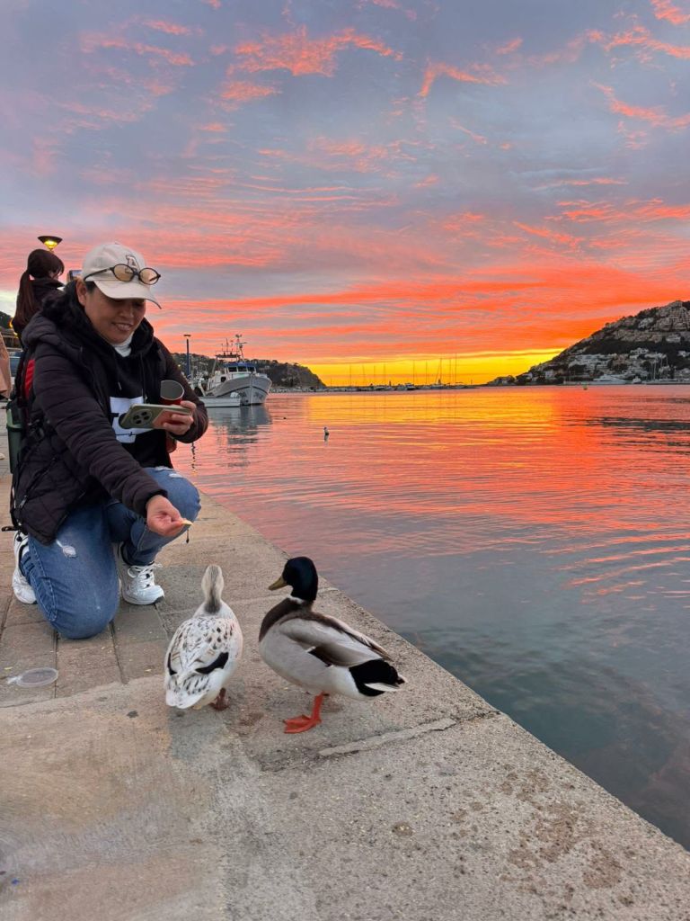 Feeding the hungry ducks.
