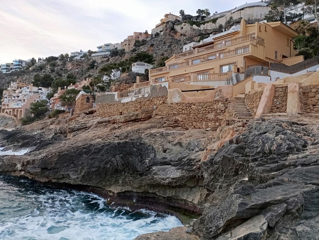 A house with the big rocks at the seaside.